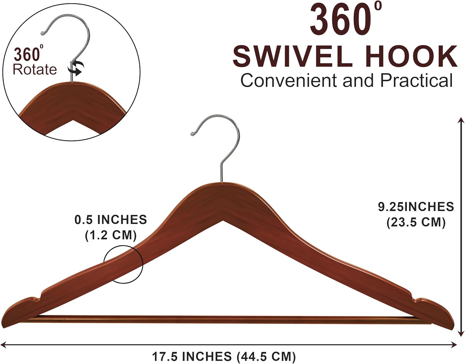 Premium Wooden Hangers 30 Pack – Durable & Slim Coat Hanger – Suit Hanger with 360-Degree Rotatable Hook – Wood Hangers with Shoulder Grooves (Cherry Color)