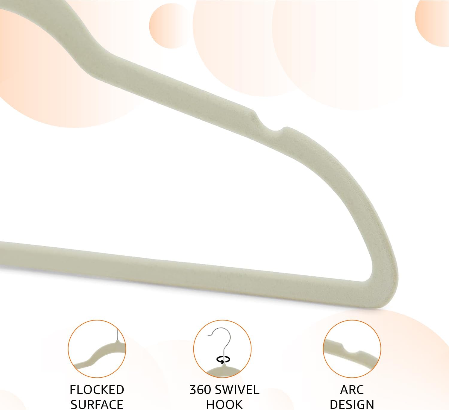 Slim, Velvet, Non-Slip Suit Clothes Hangers, Ivory/Beige- Pack of 30